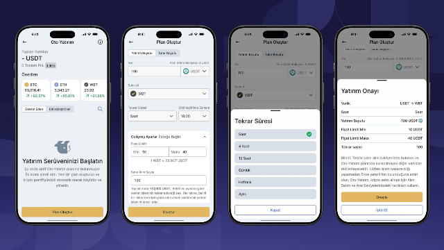 Yatırımlara yalnızca 0,001 USDT ile başlayabilme, saatlikten aylığa uzanan ölçekte yatırım sıklığı seçme, alım fiyat aralığını ve tekrar satın alma sayısını belirleme imkanı veren; ayrıca işlem çifti sınırlaması olmadan kullanılabilen Oto-Yatırım özelliğinin, yatırımcılara esneklik ve kontrol sağladığı ifade edildi.